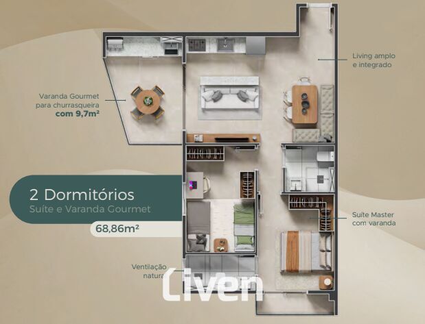 Área Privativa68,86m²