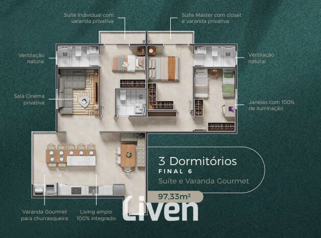 Área Privativa97,33m²