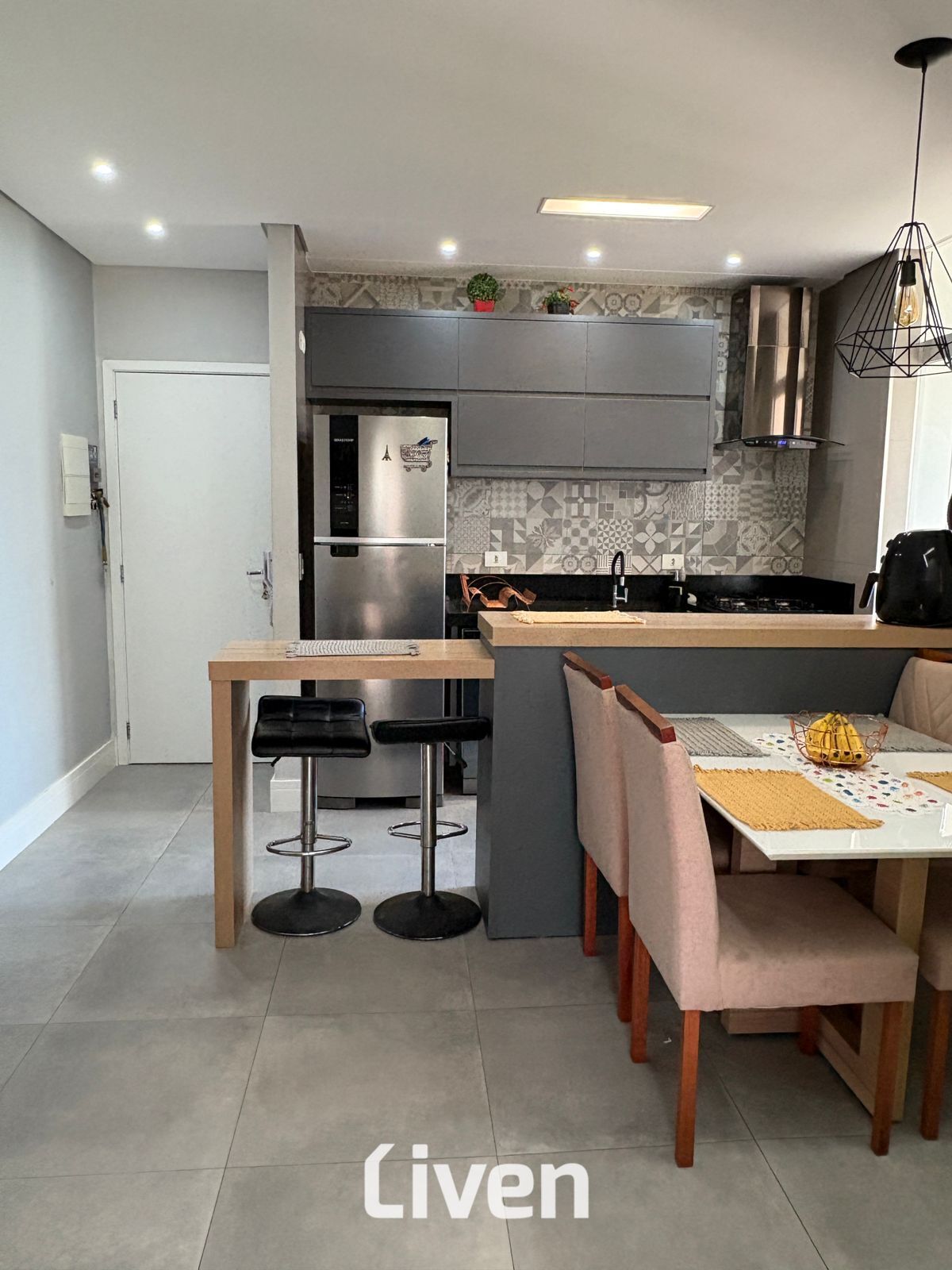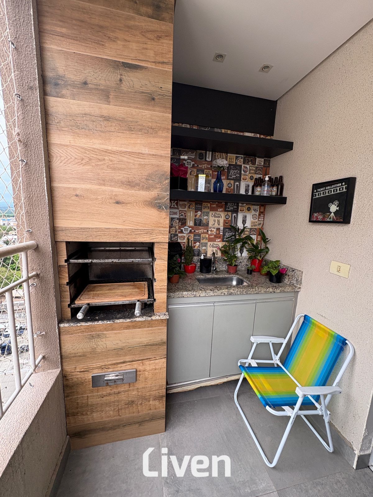 Armário na cozinhaArmários planejadosChurrasqueiraInterfonePiso LaminadoPiso PorcelanatoVaranda gourmet
