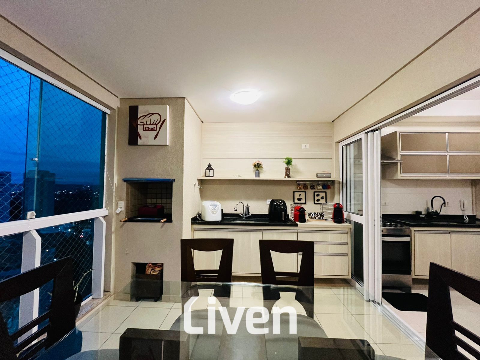 Armário na cozinhaArmários planejadosChurrasqueiraCozinha americanaInterfonePiso CerâmicoPiso LaminadoVaranda gourmet