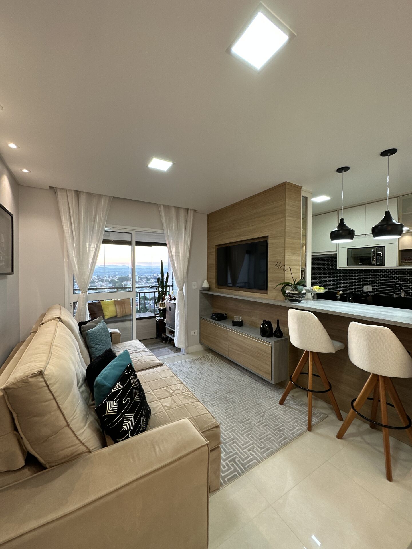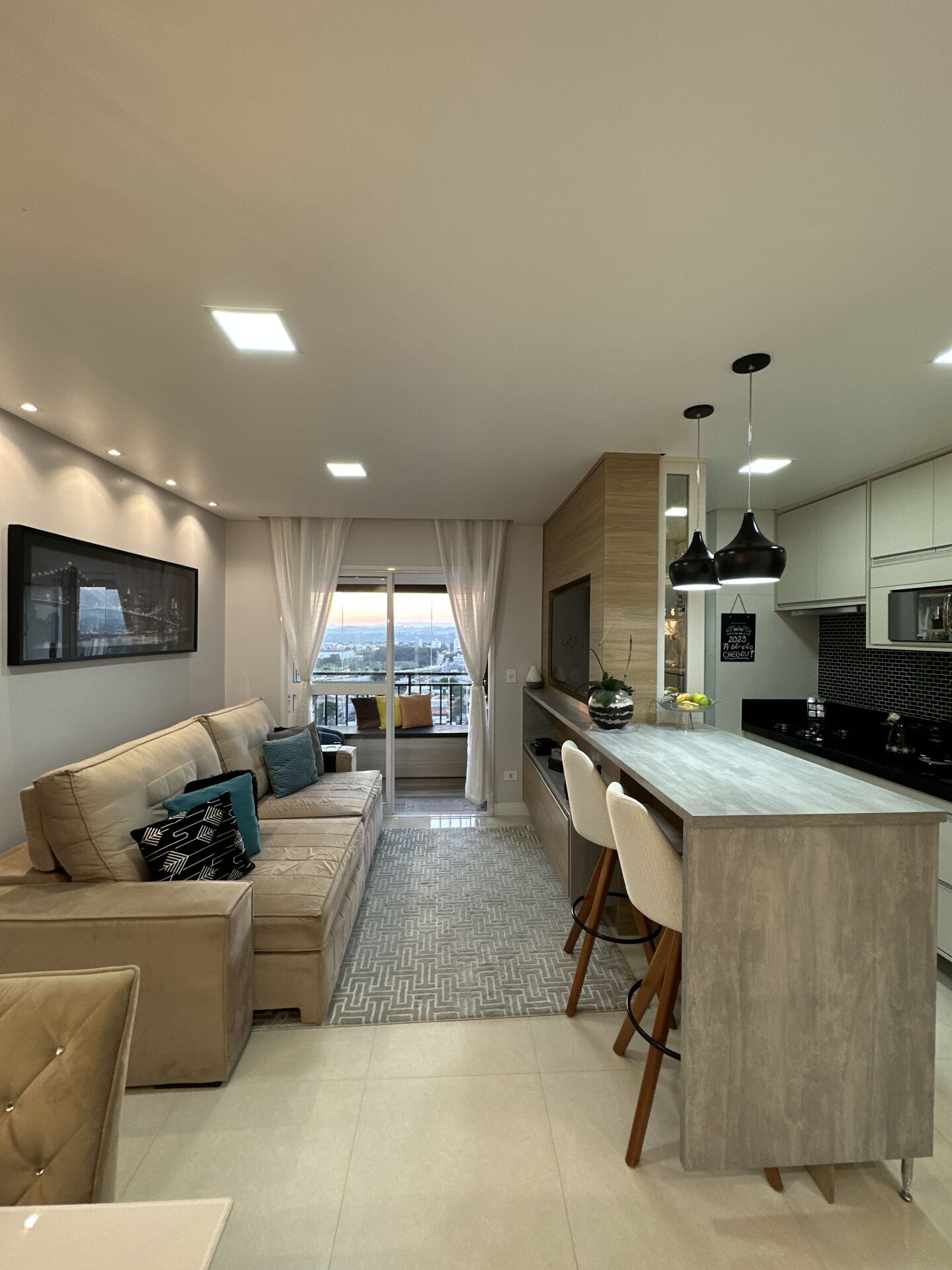 Lindo apartamento de 2 dormitórios sendo 1 suíte, banheiro social com box e planejados, sala com 2 ambientes sendo 1 de estar e 1 de jantar, cozinha no estilo americana repleta de armários planejados e integrada à área de serviço, varanda com vista livre e para o lindo por do sol, 1 vaga de garagem, condomínio com academia, brinquedoteca, espaço gourmet, churrasqueira coletiva, piscina adulto e infantil, quadra poliesportiva, salão de festas, salão de jogos, portaria e segurança 24h.