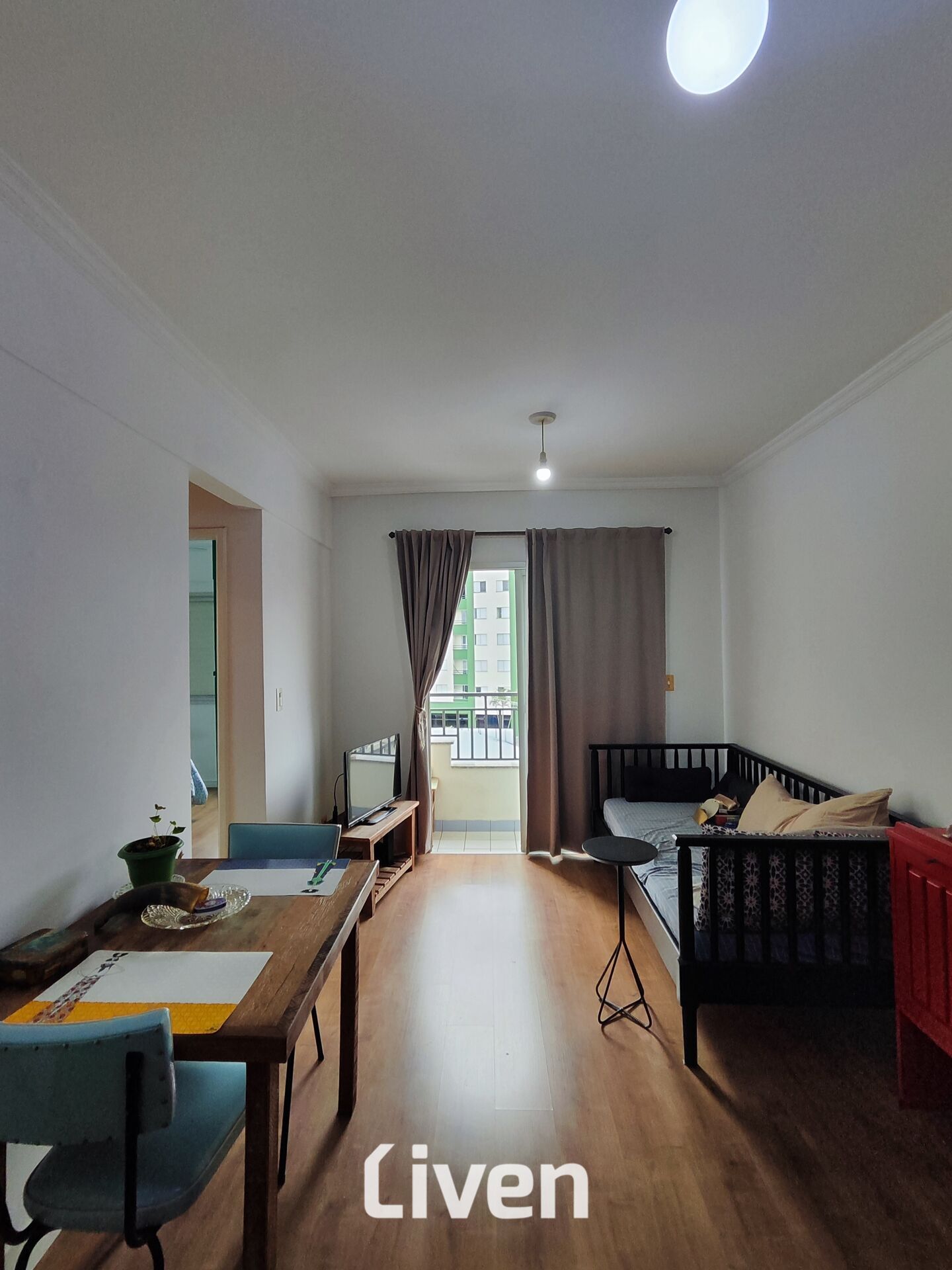 Apartamento de 40m² com 1 quarto, banheiro social com box em vidro, sala de estar integrado a sala de jantar, sacada, cozinha com armários planejados integrado a área de serviço, 1 vaga de garagem coberta e uma ótima localização em São José dos Campos.