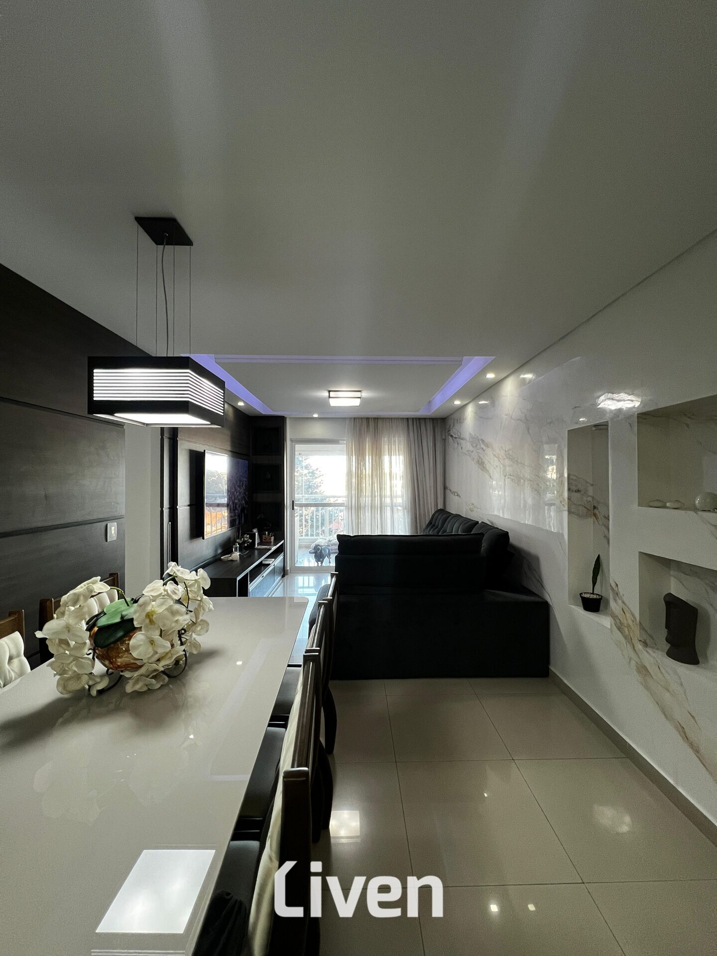 Apartamento à venda de 88m², 3 quartos sendo 1 suíte, banheiro social com box em vidro e gabinete, sala de estar integrada à sala de jantar, cozinha americana, área de serviço, sacada com cortina de vidro, área gourmet com churrasqueira, imóvel repleto de armários planejados de ótima qualidade, 2 vagas de garagem e uma excelente localização.