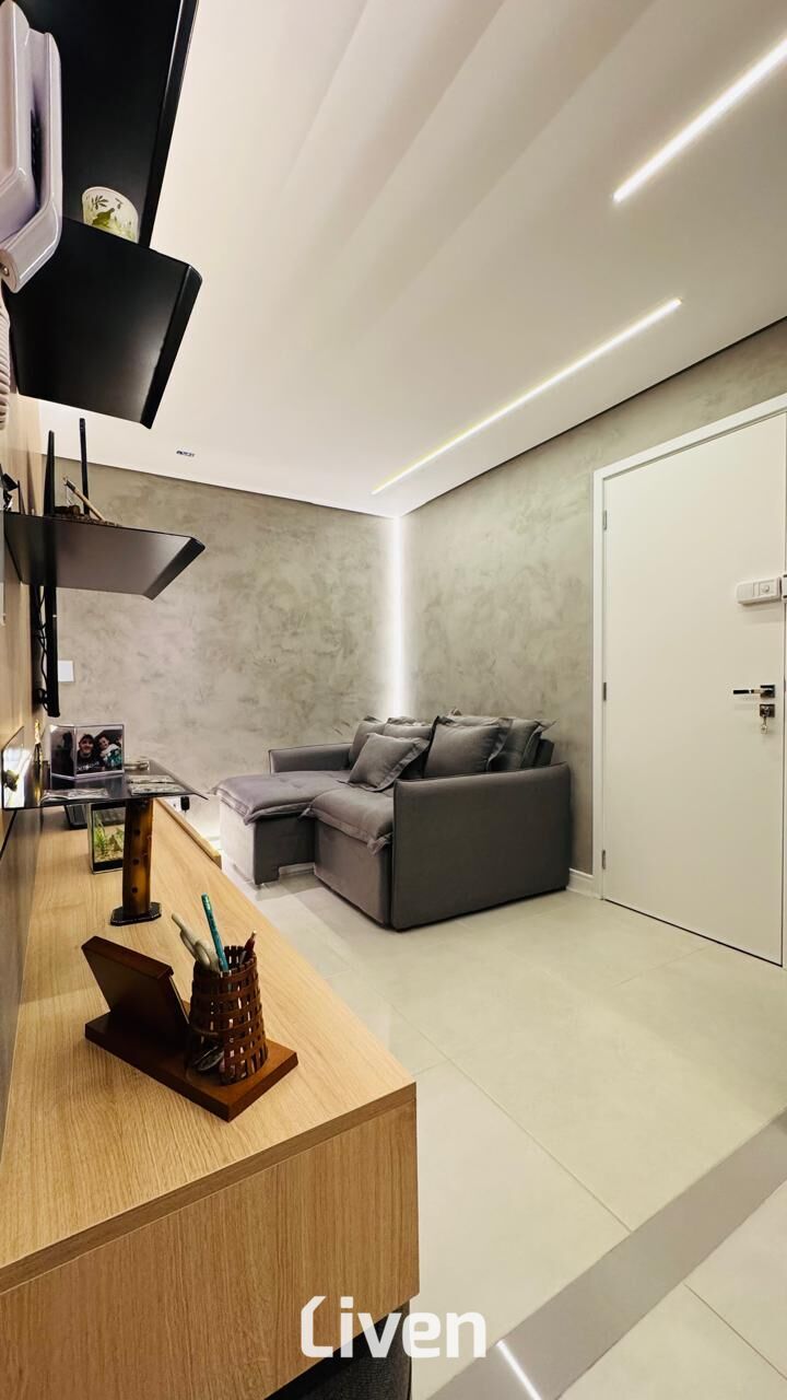 Apartamento à venda de 54m², 2 quartos sendo 1 suíte, banheiro social com box em vidro e gabinete, sala de estar integrada à sala de jantar, cozinha, área de serviço, sacada, área gourmet com churrasqueira, imóvel repleto de armários planejados de ótima qualidade, imóvel vendido de porteira fechada, 1 vaga de garagem e uma excelente localização.