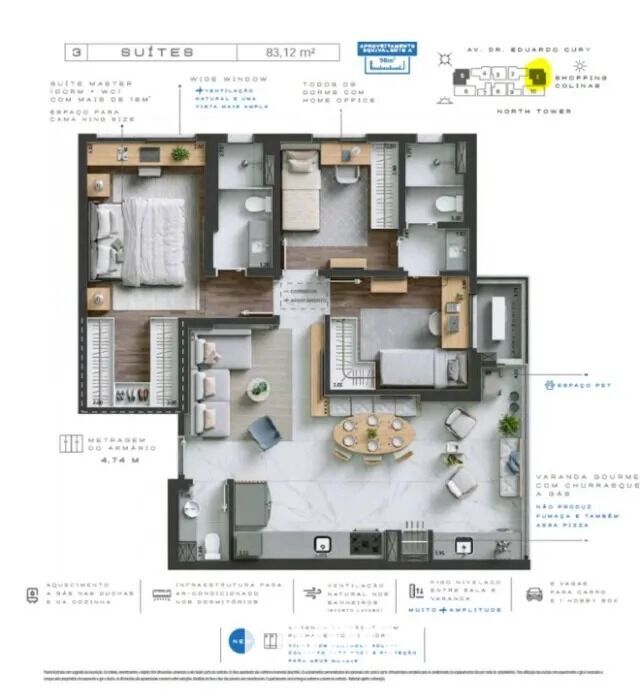 Kingdom Tower - Jardim das Colinas - São José dos Campos/SP, Zona OesteAPARTAMENTO À VENDA COM 3 QUARTOS, 85 M² - JARDIM COLINAS!!