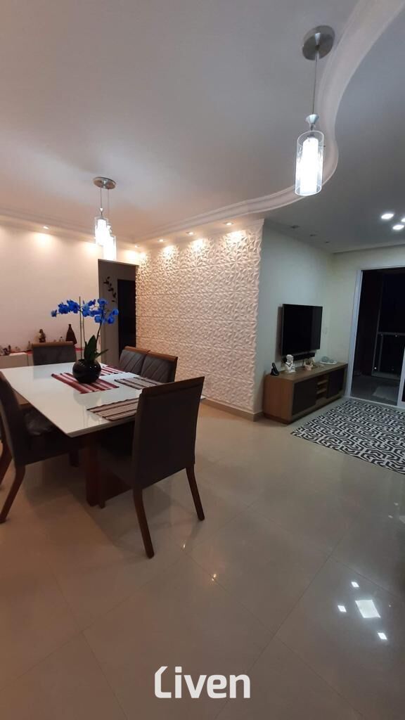 Lindo apartamento à venda de 90m², com 3 quartos sendo 1 suíte, banheiro social com box em vidro e gabinete, sala de estar integrada à sala de jantar, cozinha, área de serviço, sacada, imóvel repleto de armários planejados de ótima qualidade, 2 vagas de garagem e uma excelente localização na Zona Sul de São José dos Campos.