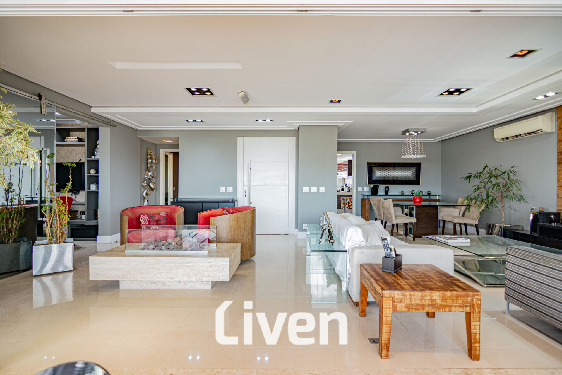 Apartamento de alto padrão, sendo 2 por andar, torre única ,4 quartos, sendo 3 suítes com varanda no casal, elevador social privativo, ar condicionado todos ambientes, lareira, choppeira, ampla varanda gourmet com belíssima vista, sala de estar, sala de jantar, sala de tv, copa, cozinha planejada, área de serviço, 3 vagas independentes sendo 1 vaga para carro elétrico, quarto despejo na garagem, gerador para todos apartamentos e sistema de Biometria na portaria e elevadores. O Condomínio conta com lazer completo, bela Piscina aquecida, belíssimo conjunto de salão de festas, academia.