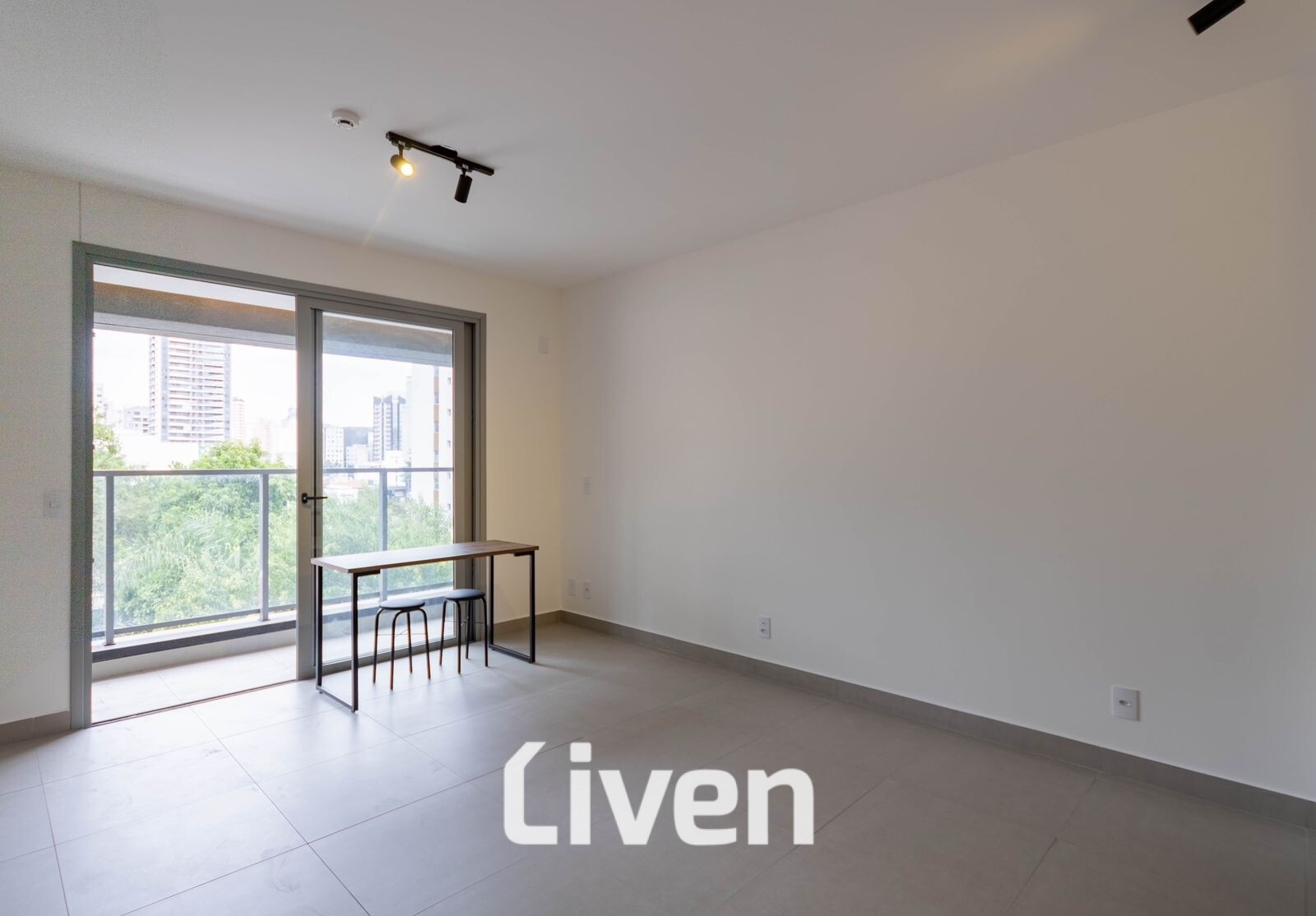 Belo studio de 32m² completo com banheiro social com box em vidro, ambientes integrados que inclui cozinha, sala e quarto, sacada e uma ótima localização em Perdizes, zona oeste de São Paulo.