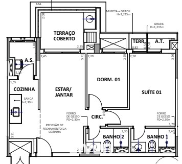 2 Dormitórios, sendo 1 suíte2 Banheiros1 VagaGaragem Coberta1 Cozinha1 Sala de jantar1 Sala de estar1 Área de serviço
