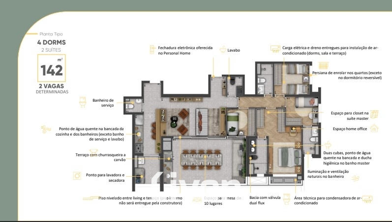 Belíssimo lançamento de 142m² com 4 dormitórios sendo 2 suítes amplas e bem distribuídas, lavabo social, sala de estar ampla integrada à sala de TV, varanda gourmet com churrasqueira e integração com a sala de jantar com espaço para mesa de 10 cadeiras, cozinha americana bem ampla, área de serviço, lavabo auxiliar, 2 vagas de garagem cobertas e um maravilhoso condomínio com lazer completo e ótima localização na Vila Mariana.