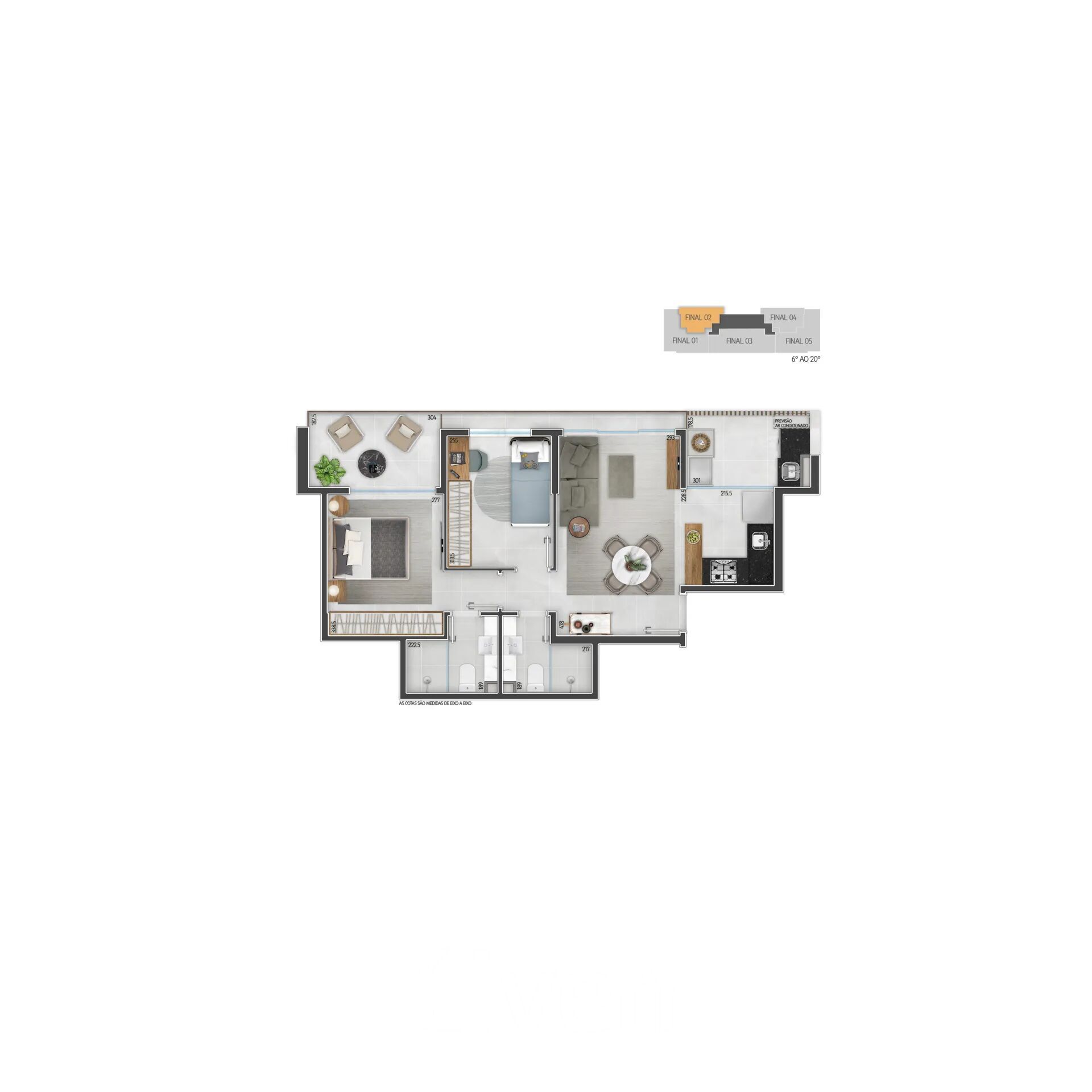 2 Dormitórios, sendo 1 suíte2 Banheiros1 VagaGaragem Coberta1 Cozinha1 Sala de jantar1 Sala de estar1 Área de serviço