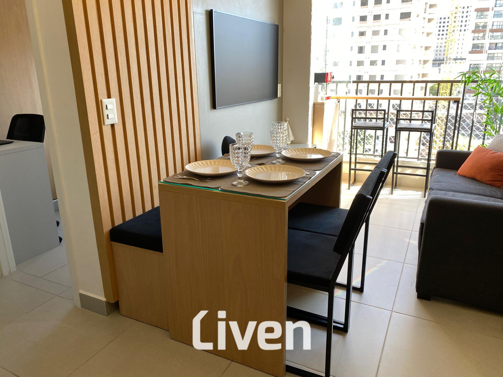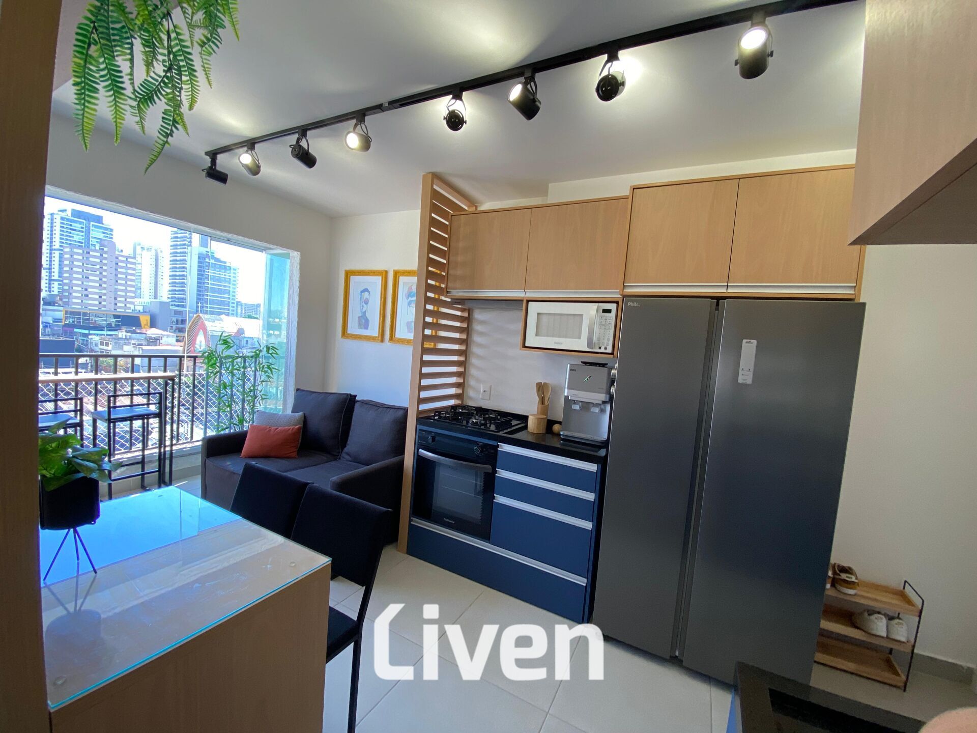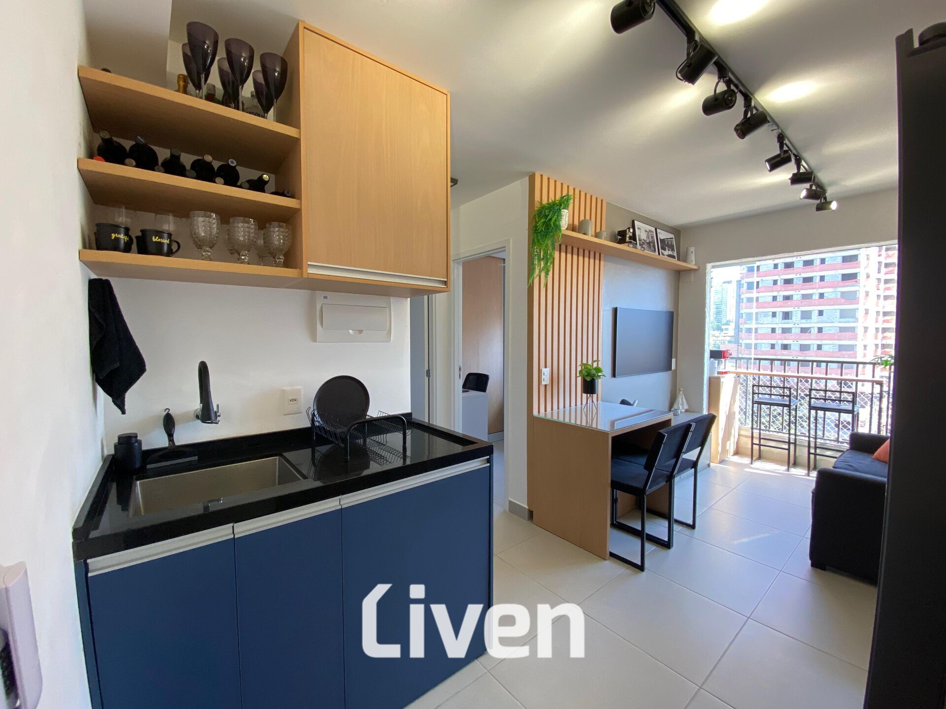 Armário na cozinhaArmários planejadosCozinha americanaInterfonePiso Porcelanato