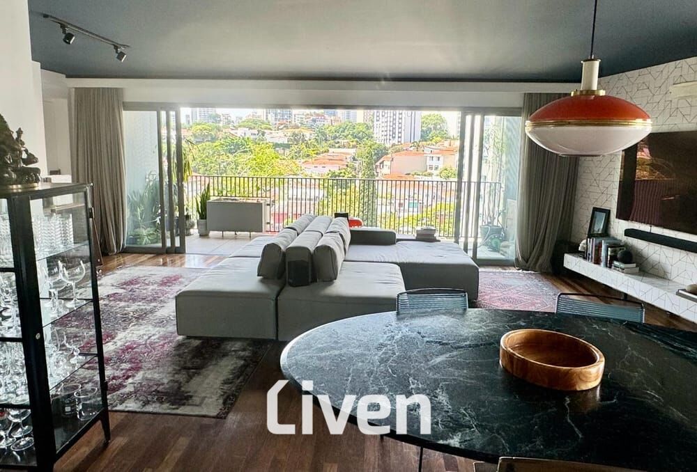Belíssimo apartamento de 162m² com 2 lindas suítes avarandadas bem amplas e bem distribuídas, ar condicionado e armários planejados nos quartos, banheiros com fino acabamento planejados com box em vidro e gabinete, sala ampla com 3 ambientes integrados sendo eles sala de estar, sala de TV e sala de jantar, uma ampla varanda, cozinha americana toda planejada com armários de qualidade, área de serviço, 3 vagas de garagem, depósito e uma ótima localização na Vila Madalena, zona oeste de São Paulo.