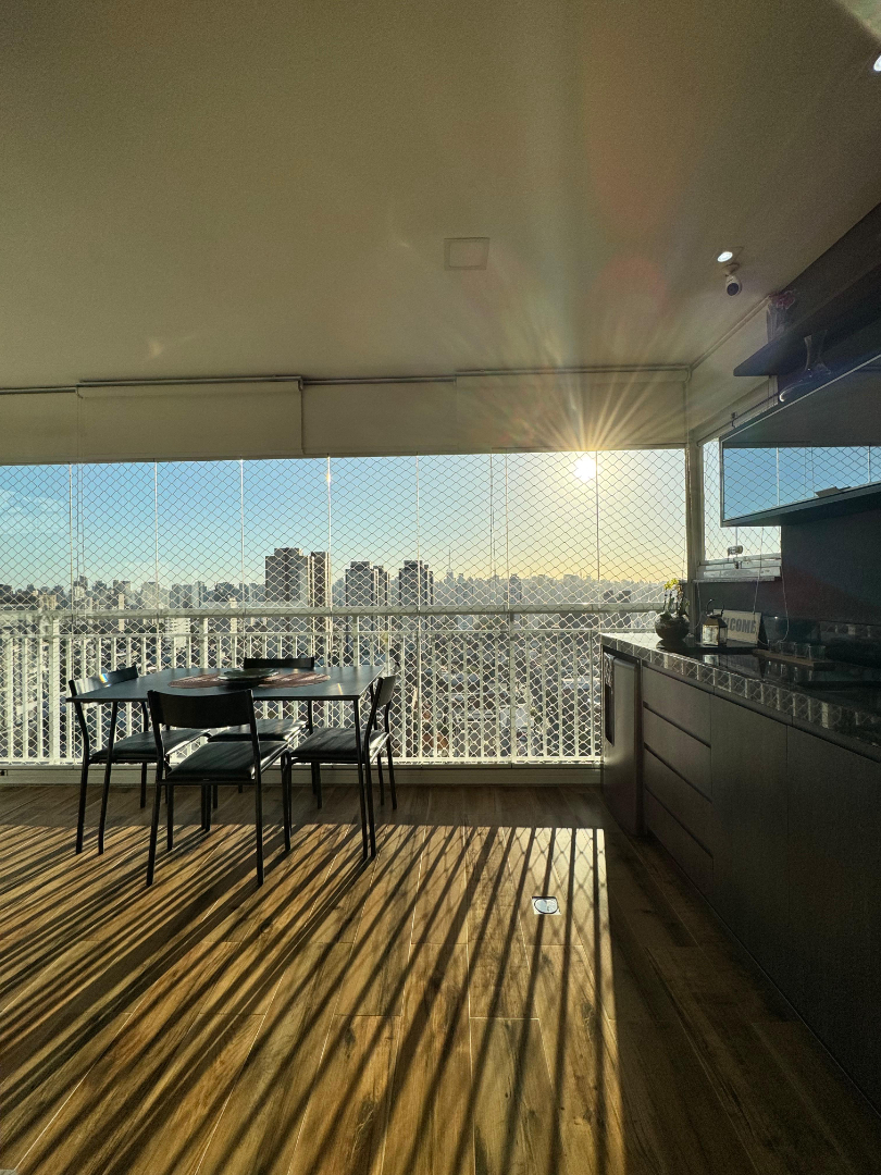 Apartamento 70m², sendo 2 dormitórios, um deles suíte, ar condicionado, varanda gourmet, sala para 2 ambientes, cozinha planejada com armários, área de serviço, banheiro social, 2 vagas de garagem, condomínio conta com piscina, academia salão de festa, espaço gourmet, churrasqueira, playground, brinquedoteca, quadra, jardim, gerador ,portaria 24 horas, além de ser muito bem localizado no bairro Aclimação.