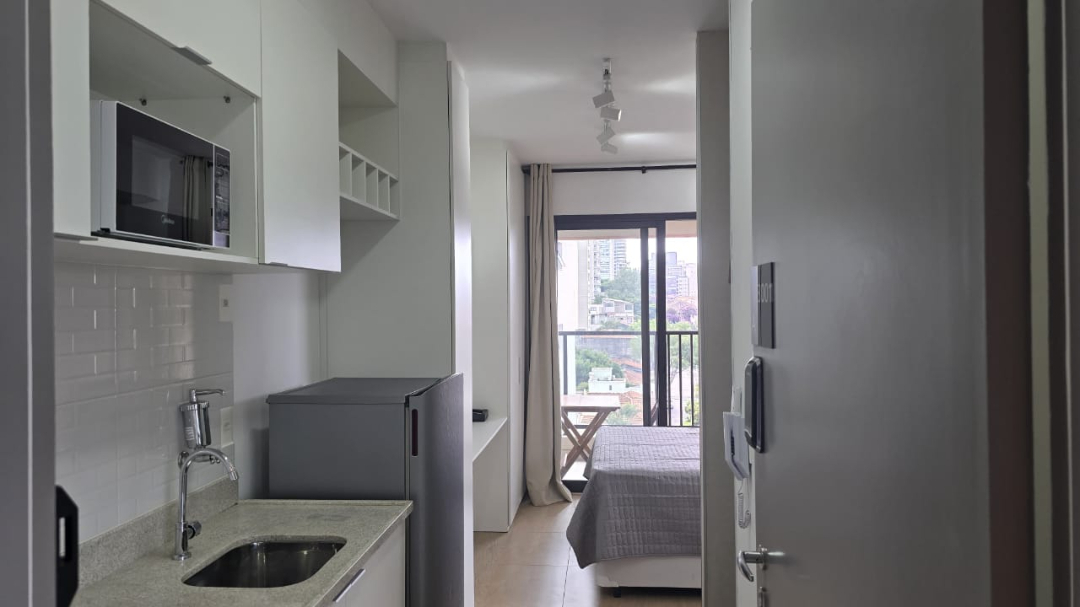 Studio decorado de 27m2 localizado na Vila Mariana - São Paulo. Contém varanda, condomínio de alto padrão, a 200 metros do metrô Vila Mariana, entre o parque da Aclimação e Ibirapuera. Próximo dos hospitais São Paulo, Oswaldo Cruz, Santa Catarina, e das faculdades ESPM, Belas Artes. Fácil acesso aos shoppings, Ibirapuera, Cidade de São Paulo, Patio Paulista e Santa Cruz. Condomínio contempla: Piscina, academia, salão de festas e jogos, lavanderia, bicicletário e área gourmet, área pet, portaria remota.