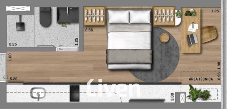 Studio de 22,5m2 com 1 dormitório integrado, cozinha ampla integrada à área de estar, banheiro social, área técnica, ótima área de lazer e uma boa localização próximo ao Allianz Parque em uma das regiões mais charmosas da cidade.