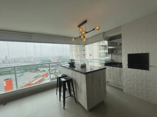 Belíssimo apartamento de 117m² com 3 lindas suítes muito bem distribuídas e com armários já embutidos, todos os banheiros com box em vidro e gabinete, ampla sala de estar integrada à sala de jantar, maravilhosa varanda gourmet com churrasqueira, cortina de vidro e vista livre, cozinha toda planejada com armários de ótima qualidade, área de serviço espaçosa, lavabo social, 2 vagas de garagem cobertas e um maravilhoso condomínio com ótima área de lazer e boa localização na Barra Funda, zona central de São Paulo.