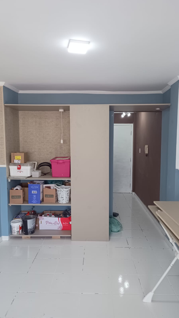 Studio à venda de 29m² com ambientes integrados entre quarto e sala, banheiro social com box em vidro e gabinete e uma ótima localização no Bela Vista, zona central de São Paulo.