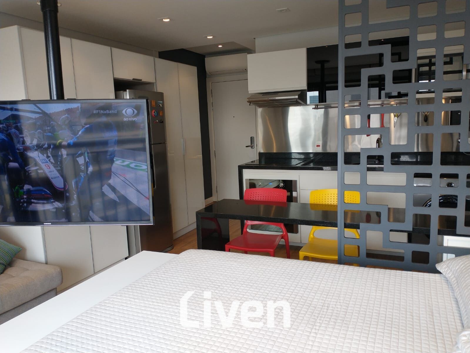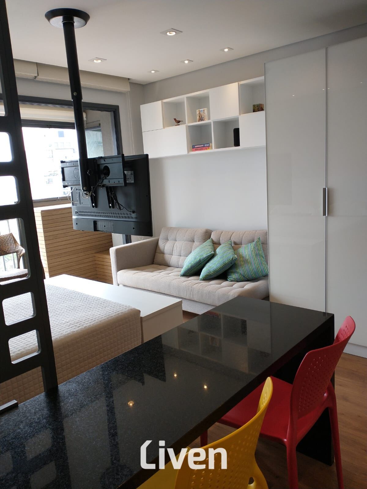 Belíssimo studio totalmente planejado à venda de 31m2 com 1 dormitório bem espaçoso integrado à sala de estar e à cozinha americana, banheiro social bem espaçoso e uma sacada espaçosa integrada à sala e com fechamento em vidro, o imóvel será entregue já mobiliado e equipado com ar-condicionado inverter, smart TV com giro de 360 graus, geladeira frost free, cooktop de 4 bocas, depurador, forno elétrico, microondas, filtro de água de parede, máquina lava e seca, bancadas em granito, metais Deca/Docol, louças Deca, cama box com baú, iluminação em led para cada ambiente, sofá, cortinas blackout e corta-luz e sacada fechada com vidros temperados, condomínio maravilhoso com uma área de lazer muito bem equipada e uma maravilhosa localização no bairro Bela Vista, zona central de São Paulo.