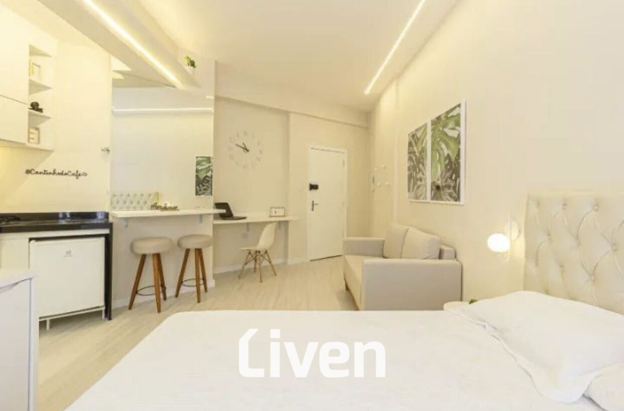 Descubra o estúdio dos seus sonhos, pronto para morar! Este espaço incrível vem completamente equipado e decorado com móveis planejados novos e uma seleção de itens modernos que garantem conforto e praticidade. Desfrute de momentos de entretenimento com a Smart TV de 42”, prepare suas refeições na cozinha completa com frigobar, microondas, cooktop e forno. Relaxe na cama box baú e aproveite a funcionalidade da cômoda/mesa com duas cadeiras e o aconchegante sofá. O estúdio também conta com uma fechadura eletrônica para sua segurança, além de um banheiro com chuveiro de qualidade. E para completar, você terá o benefício de um estacionamento coberto. Entre e sinta-se em casa neste estúdio que une estilo, conforto e praticidade! Aceita Airbnb!