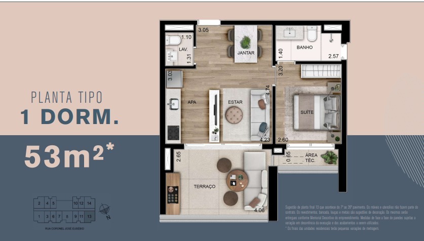 Área Privativa53m²