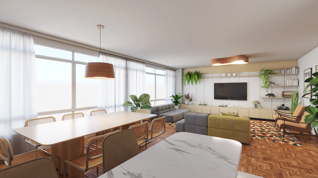 Belíssimo apartamento totalmente reformado de 143m² com 3 dormitórios sendo 1 suíte bem ampla, banheiro social bem espaçoso, lavabo social, escritório bem amplo que pode ser revertido para sala de TV, amplo living social que integra os ambientes entre sala de estar, sala de jantar e cozinha americana, área de serviço muito espaçosa, banheiro de serviço, 2 vagas de garagem cobertas e uma ótima localização em Higienópolis, zona central de São Paulo.