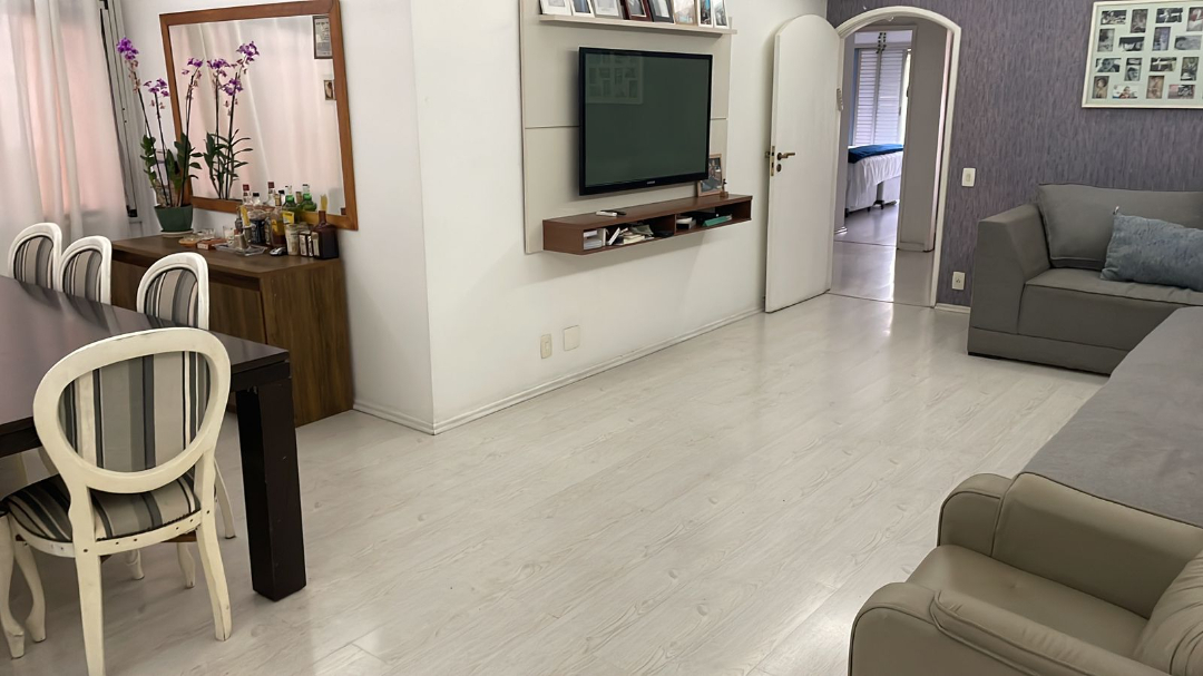 Belo apartamento de 129m² com 3 dormitórios bem espaçosos sendo 1 suíte, banheiros com box em vidro e gabinete, sala de estar espaçosa com 2 ambientes integrados sendo a área de estar e a de jantar, cozinha ampla com armários planejados já embutidos, área de serviço espaçosa, 2 vagas de garagem cobertas e um belo condomínio com brinquedoteca e salão de festas no bairro Cerqueira César, zona oeste de São Paulo.