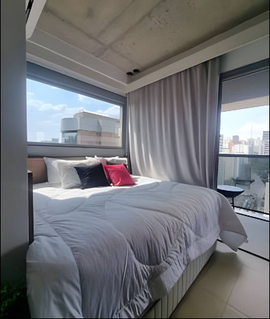 Belíssimo studio de 21m² totalmente equipado com cama confortável, ar condicionado, cozinha americana toda planejada com armários de qualidade, varanda bem espaçosa com uma ótima vista, banheiro social planejado com box em vidro, condomínio um uma bela área de lazer e uma localização maravilhosa no Jardim Paulista, zona oeste de São Paulo.