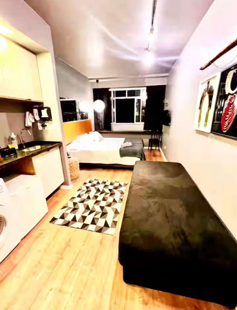 Os dois sstúdios já vem completamente mobiliado, contando com ar-condicionado quente e frio, máquina de lavar e secar roupas, além de uma cozinha equipada com frigobar e microondas.