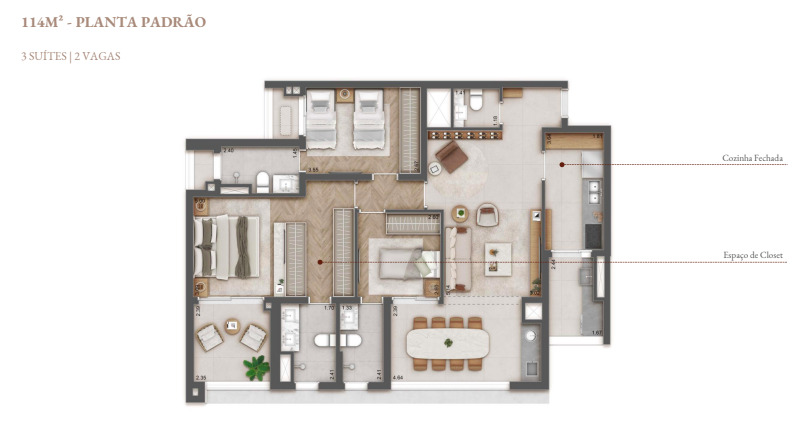 Área Privativa114m²