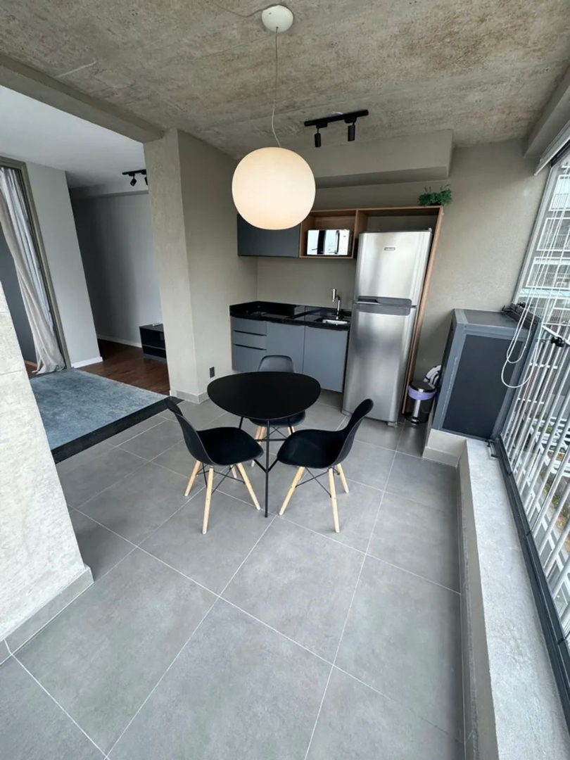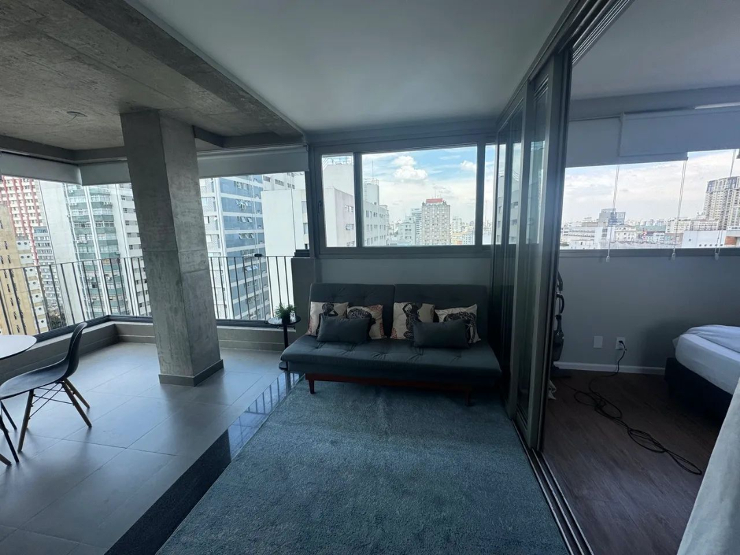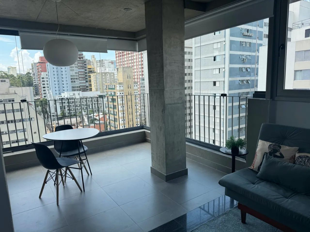 Belíssimo studio de 46m² com 1 dormitório muito bem distribuído e já com ar condicionado embutido, banheiro social totalmente equipado com box em vidro e gabinete, ambientes sociais totalmente integrados distribuídos em sala de estar, cozinha americana e uma linda varanda com ótima vista e cortina de vidro já instalada, 1 vaga de garagem coberta e um maravilhoso condomínio com uma ótima área de lazer e uma maravilhosa localização na região da Cerqueira César, zona oeste de São Paulo.