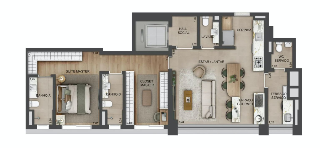Belíssimo lançamento com apartamentos de 98m² com 2 lindas suítes sendo 1 suíte máster com closet, banheiro social e lavabo, hall privativo, sala de estar ampla integrada à sala de jantar, varanda gourmet integrada à sala, cozinha bem ampla, área de serviço com banheiro auxiliar, 2 vagas de garagem cobertas e um maravilhoso condomínio com lazer completo e uma ótima localização no Paraíso, zona sul de São Paulo.