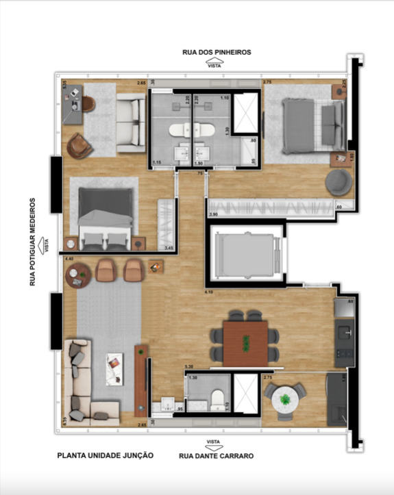 2 Dormitórios, sendo 2 Suítes2 Vagas