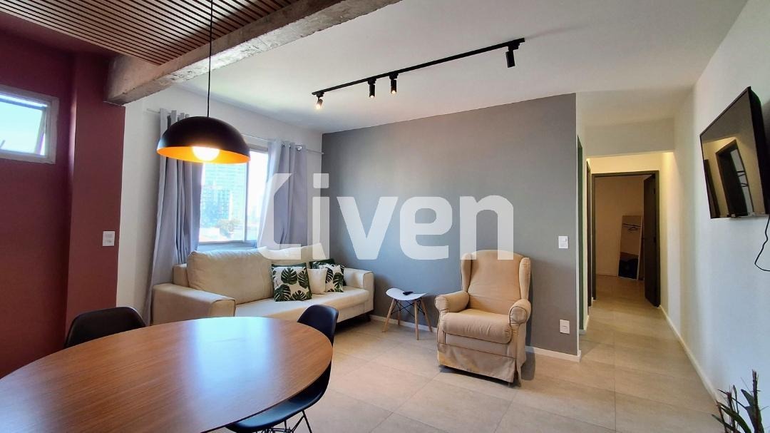 Apartamento à venda de 65m² com 2 dormitórios bem espaçosos e muito bem distribuídos, banheiro social com box em vidro, lavabo, sala de estar ampla integrada à sala de jantar, cozinha espaçosa com armários planejados, área de serviço, 1 vaga de garagem coberta e uma ótima localização em Pinheiros, zona oeste de São Paulo.