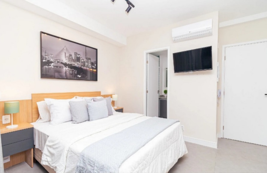 Belíssimo studio de 24m² totalmente planejado com alta qualidade de móveis, com 1 dormitório integrado à cozinha e área de estar, armários planejados de muito bom gosto na cozinha, varanda bem espaçosa, banheiro social com box em vidro e gabinete e um maravilhoso condomínio com um ótimo espaço de lazer e muito bem localizado no bairro da República, zona central de São Paulo.