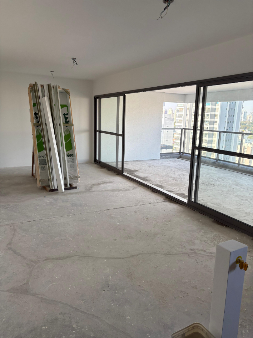 Apartamento de 185m² no 14º andar, com 3 suítes (master com terraço), hall privativo, sala ampla, varanda gourmet, lavabo em mármore, cozinha com despensa, área de serviço e 3 vagas determinadas. Acabamentos modernos, automação de persianas e infraestrutura para ar-condicionado.