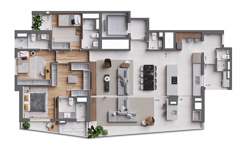 Apartamento com entrega para maio de 2026. Com 168 m² privativos, possui 3 quartos sendo 3 suítes, home office, varanda gourmet. 2 vagas cobertas