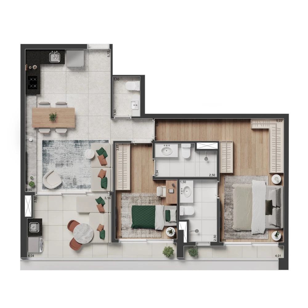 2 Dormitórios, sendo 2 Suítes1 Vaga