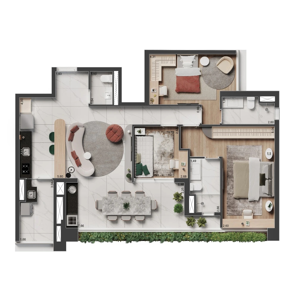 Área Privativa74m²