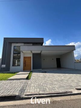 Casa em condomínio à venda de 150m² com 3 quartos sendo 1 suíte com closet, 2 banheiro sociais, lavabo, ampla sala de estar integrado a sala de jantar, linda cozinha americana, área de serviço, quintal gramado, área gourmet com churrasqueira, 4 vagas de garagem sendo 2 cobertas e uma ótima localização dentro do condomínio Terras do Vale.