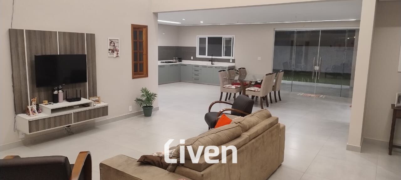 Sobrado em condomínio à venda de 326m², 4 quartos sendo 1 suíte avarandada com closet, banheiro social, lavabo, ampla sala de estar, sala de jantar, cozinha americana, área de serviço, quintal espaçoso, área gourmet com churrasqueira, imóvel repleto de armários planejados de ótima qualidade, 4 vagas de garagem sendo 2 cobertas e uma excelente localização.