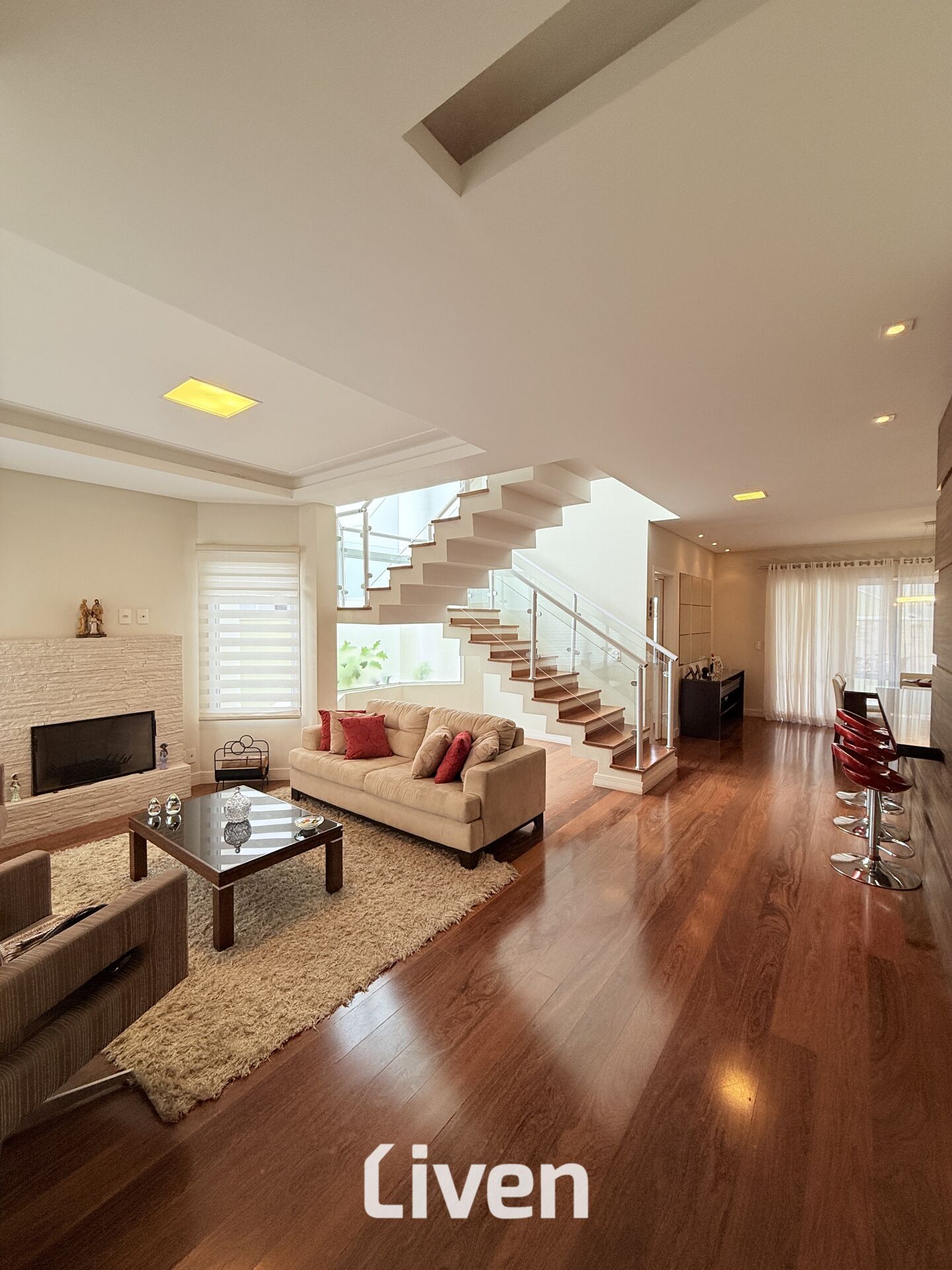 Sobrado à venda em condomínio de 299m², 4 suítes sendo a principal com closet, banheiro social com box em vidro e gabinete, sala de estar, sala de jantar, sala de TV, cozinha americana, área de serviço, quintal espaçoso, piscina, área gourmet com churrasqueira, imóvel repleto de armários planejados de ótima qualidade, 4 vagas de garagem e uma excelente localização.