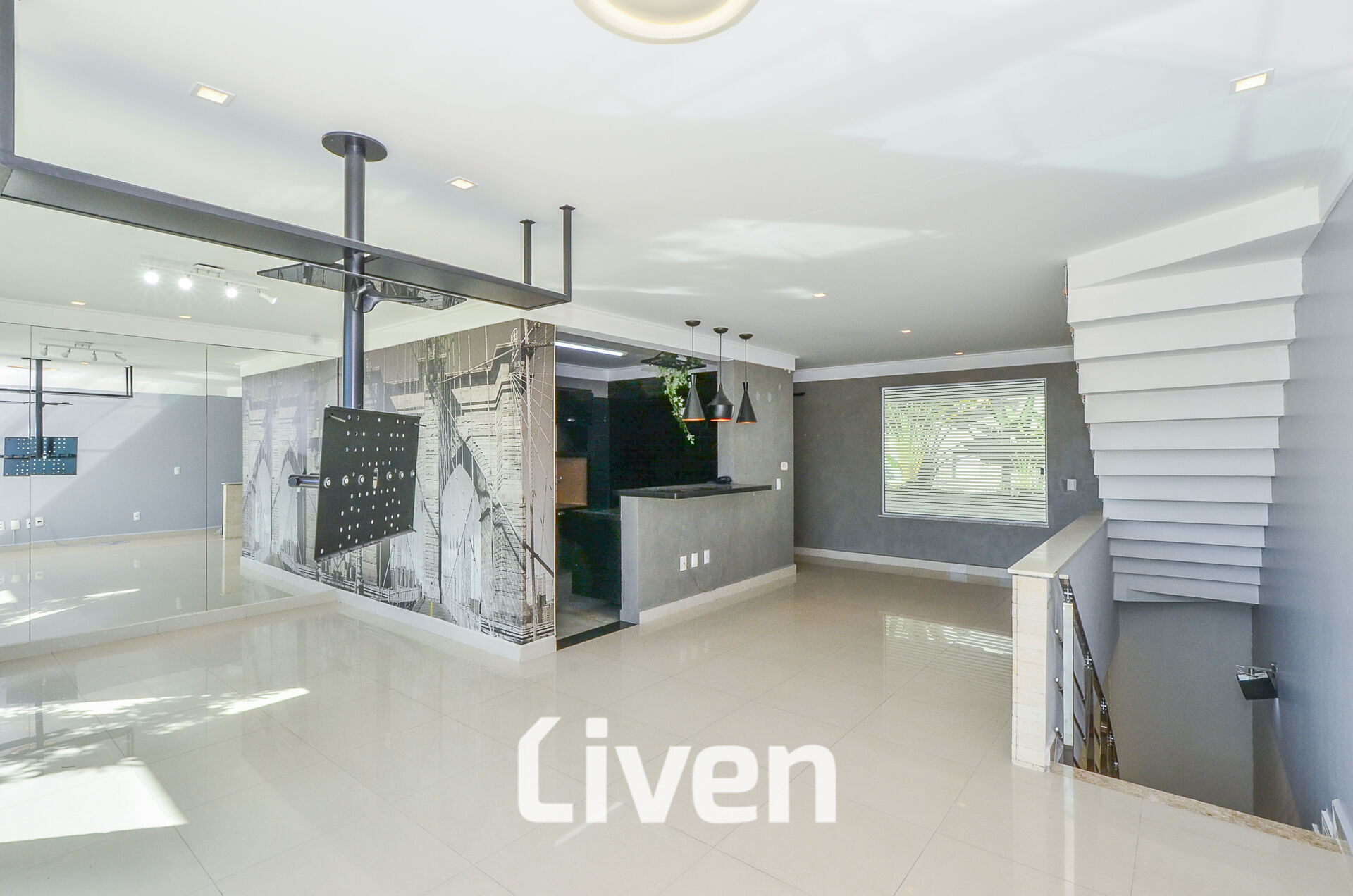 Ao entrar neste ambiente requintado, você será acolhido por um espaço convidativo e elegante. O térreo oferece um lavabo moderno e um amplo living integrado de maneira harmoniosa à cozinha americana, proporcionando o cenário ideal para receber amigos e familiares em momentos memoráveis. Além disso, uma lavanderia funcional e um quarto com banheiro de serviço ampliam as opções de uso, seja para acomodar colaboradores ou transformá-lo em um prático escritório privativo.