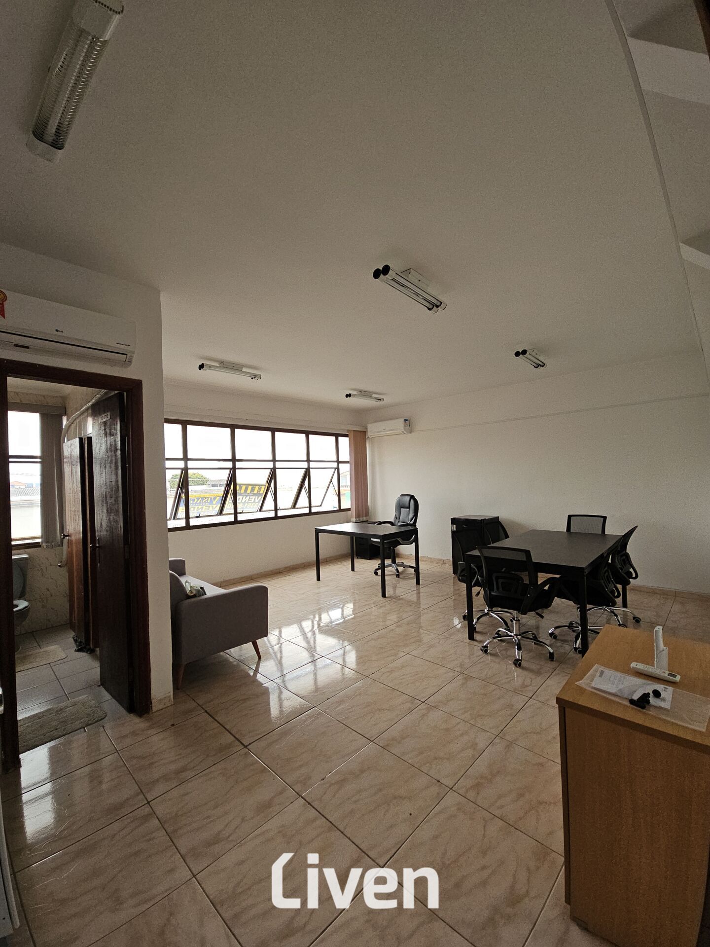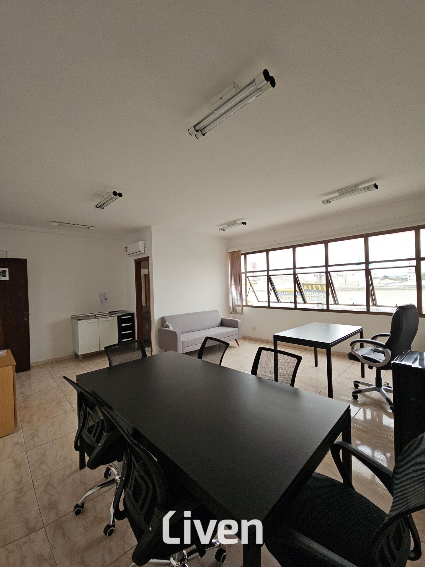 Sala comercial ampla, moderna, com excelente iluminação natural e ja equipada com mesas e cadeiras, pronta pra uso, na regiao central de jacareí, ao lado da santa casa.